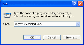 Some users may find that when they try and run the programmes downloaded from this website that they do not have a complete installation of visual basic runtime files on their system. Below is a list of useful files. Download them (right click and "save as...") into your system directory (usually c:\windows\system or c:\windows\system32), then register the file by opening the "Run" dialogue (under the Start menu) and typing: regsvr32 what-ever-file (see this picture for an example). Your programme should now run!